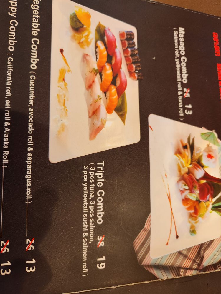 3 pcs shrimp. 2 pcs crab meat, mango, inside out roll (fried in tempura batter and special sauce)