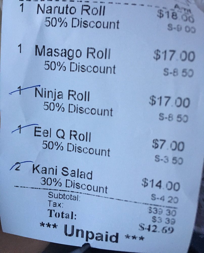 1 tuna roll, 1 spicy tuna roll & 3 pieces tuna sushi
